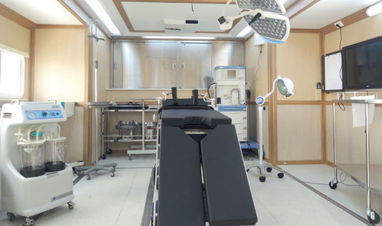 6686在线登录官网入口手术车通过层流净化装置达到舱内环境万级净化标准,整车集成供氧、制氧系统,安装手术床、无影灯及其他手术专用仪器设备,在应急情况下实施手术救援。